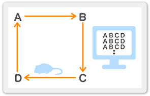 起きてるあいだ、ネズミに同じ経路をA→B→C→D、A→B→C→Dと何度も歩かせます。